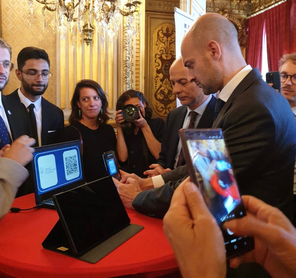 Le jeudi 3 juillet, Jean-Noël Barrot, ministre de l’Europe et des Affaires étrangères a officiellement lancé le premier contingent de la réserve diplomatique citoyenne, composé de plus de 200 volontaires, au Quai d’Orsay. Pilotée par l’Académie diplomatique et consulaire, la réserve est actuellement dans sa phase expérimentale. Ce premier contingent est notamment composé de salariés des opérateurs et retraités du Quai d’Orsay, de volontaires du Service Civique ayant servi à l’étranger ET des alumni de l’Académie diplomatique d’été !